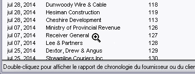 Vous pouvez double-cliquer sur diverses parties des rapports pour afficher les détails de transactions ou des renseignements connexes que vous n'avez pas supprimés des données de votre entreprise.